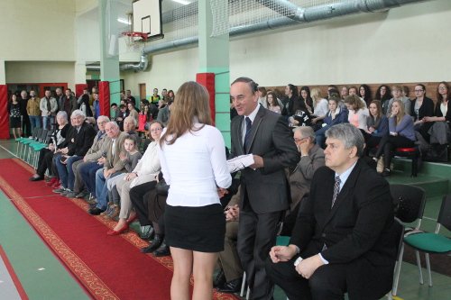 Przedstawiciele Wojskowej Akademii Technicznej obdarowali Zespół Szkół portretem gen. Sylwestra Kaliskiego -patrona szkoły oraz projektorem multimedialnym, który ma wspomóc edukację uczniów.