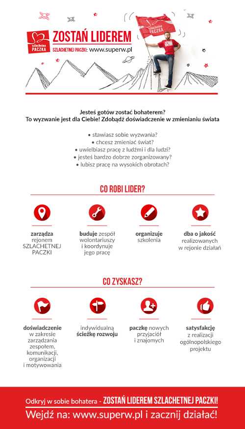 Aby zostać liderem SZLACHETNEJ PACZKI wejdź na www.superw.pl i uzupełnij formularz zgłoszeniowy. Rekrutacja trwa do 15 czerwca.