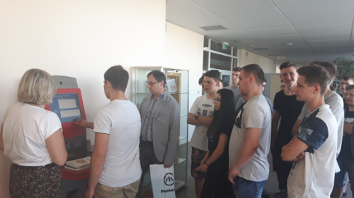 W dniu 02.06.2017r. grupa 21 uczniów z klasy 1, 2 i 3 technikum informatycznego naszej szkoły uczestniczyła w wycieczce zawodoznawczej pt. „Sztuczna Inteligencja”. W pierwszej kolejności uczniowie mieli okazję zwiedzić i poznać funkcjonowanie Biblioteki Uczelnianej PWSZ w Lesznie, z którą Zespół Szkół im. gen. Sylwestra Kaliskiego w Górze ma podpisaną umowę o współpracy. Nasi uczniowie na preferencyjnych warunkach, bez opłat, mogą korzystać z zasobów biblioteki na podobnych warunkach jak studenci uczelni. Warto nadmienić, iż biblioteka jest nowoczesnym budynkiem, wykorzystującym nowoczesne technologie IT, posiadającą elektroniczną bazę zasobów w 100%. Dzięki temu w łatwy sposób możemy przeglądać i sprawdzać dostępność pozycji w katalogach bazy. W bibliotece wykorzystywany jest elektroniczny system wypożyczeń i zdawania książek, dzięki czemu możemy samodzielnie wypożyczyć i oddać książki, nie stojąc w kolejce.