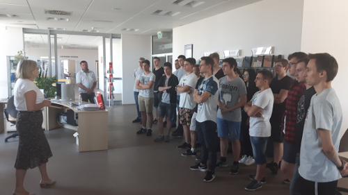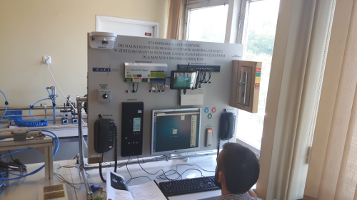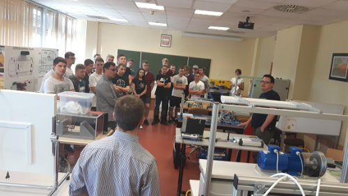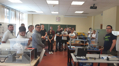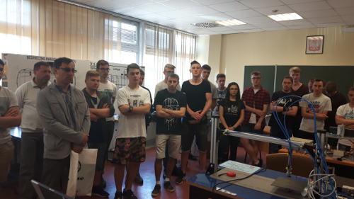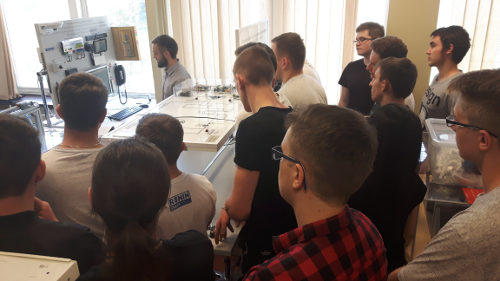 Drugim etapem wycieczki było zwiedzanie laboratoriów informatyczno-elektronicznych w Państwowej Wyższej Szkole Zawodowej im. Jana Amosa Komeńskiego w Lesznie. Uczniowie mieli okazję poznać działanie stanowisk do zarządzania i konfigurowania systemów obsługujących działanie urządzeń elektronicznych z różnych dziedzin przemysłu (motoryzacji, monitoringu, budownictwa, energetyki itp.). Warto nadmienić, że te stanowiska badawcze były budowane przez studentów przy współpracy z zakładami. Studenci realizowali studia dualne w systemie dziennym (2 tygodnie na uczelni, 2 tygodnie w zakładzie pracy).