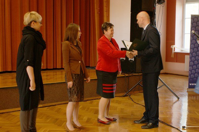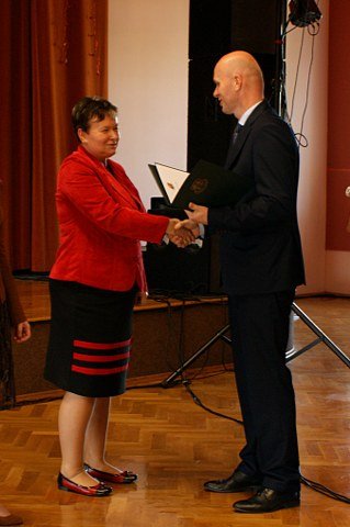 Po zaprezentowaniu wszystkich projektów uczniowie z obu szkół otrzymali z rąk starosty Piotra Wołowicza listy gratulacyjne i dyplomy oraz drobne upominki. Osobne podziękowania zostały złożone na ręce opiekunek projektów zarówno przez pana starostę jaki i panią burmistrz Irenę Krzyszkiewicz.
