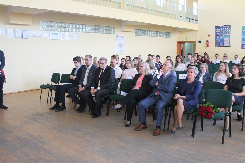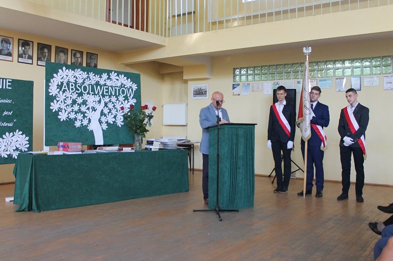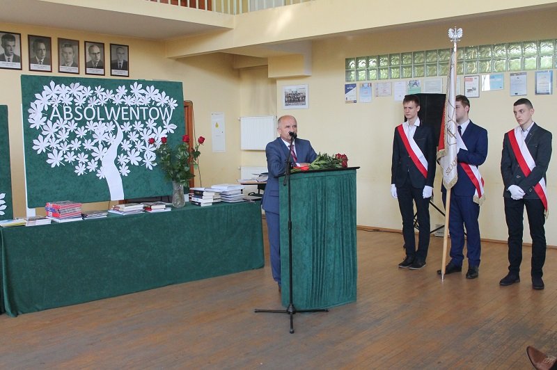 Podczas uroczystości nie zabrakło także życzeń i podziękowań od pana dyrektora, Krzysztofa Szmydyńskiego, skierowanych do uczniów, wychowawców, nauczycieli i rodziców. Wypowiedzią Alberta Einsteina „Najpiękniejszą rzeczą, jakiej możemy doświadczyć, jest oczarowanie tajemnicą. Jest to uczucie, które stoi u kolebki prawdziwej sztuki i prawdziwej nauki. Ten, kto go nie zna i nie potrafi się dziwić, nie potrafi doznawać zachwytu, jest martwy, niczym zdmuchnięta świeczka” podkreślił ciężką pracę grona pedagogicznego, ale także zapał i zaangażowanie młodzieży. Z dumą mówił o tych, którzy właśnie stali się absolwentami Zespołu Szkół. Życzył wszystkim uczniom spełnienia marzeń i osiągnięcia wyznaczonego celu.