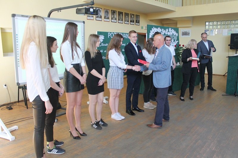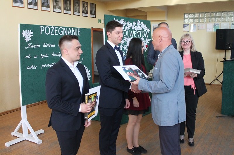 Następnie dyrekcja Szkoły oraz pan Artur Małecki wychowawca klasy IV TEHT wręczyli uczniom świadectwa ukończenia szkoły. Ponadto książkami nagrodzono absolwentów, którzy osiągnęli bardzo dobre wyniki w nauce i wzorowe sprawowanie oraz mieli wysoką frekwencję.