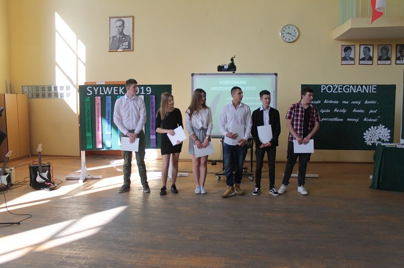 W podniosłej atmosferze dyrektor wręczył rodzicom absolwentów, którzy ukończyli szkołę z wyróżnieniem Listy gratulacyjne. A byli to: Gabriel Ratajczak, Sara Bielecka, Damian Rapta (IV TI), Anna Janowiak i Patrycja Zakarczemna (IV TL).