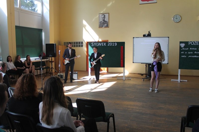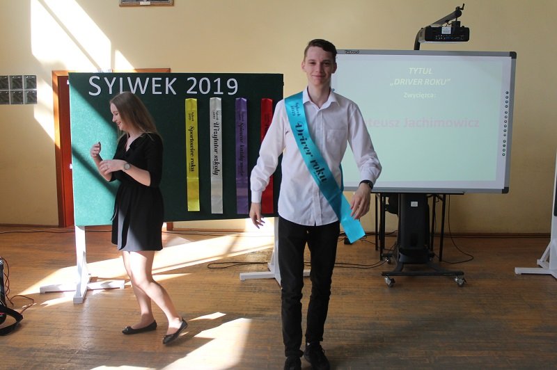 Następnie głos oddano klasom III TL i III THT, które pod kierunkiem pani Agnieszki Nawrockiej i pana Mariusza Baworowskiego przygotowały humorystyczną część artystyczną. W wesołe scenki z życia szkoły wpleciono tradycyjne wręczanie nagród dla laureatów w poszczególnych kategoriach: