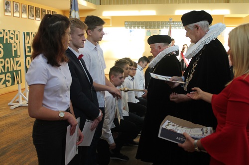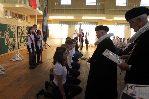 Po ślubowaniu odbyło się uroczyste pasowanie wyróżnionych uczniów przez przedstawicieli Cechu Rzemiosł Różnych: