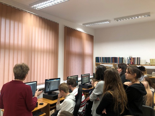 Uczniowie uczestniczyli w lekcji bibliotecznej, obejrzeli Kroniki Góry oraz zapoznali się z Cyfrowym Archiwum Tradycji Lokalnej CATL i katalogiem Aleph. Mogli też zobaczyć w części zdigitalizowane archiwalne czasopisma dotyczące naszego regionu oraz Dokumentację Prasową Góry i okolic. Dowiedzieli się o możliwości korzystania z IBUKÓW- polskiej biblioteki cyfrowej i wypożyczalni e-booków umożliwiającej wypożyczanie książek w formatach elektronicznych za pośrednictwem internetu.