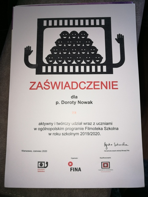 W minionym roku szkolnym uczniowie Zespołu Szkół również aktywnie udzielali się w ogólnopolskim programie Filmoteki Szkolnej. Uczestniczyli m.in. w czterech spotkaniach. Były to warsztaty filmowe dotyczące: języka popkultury, tworzenia haseł reklamowych i wizualizacji, manipulacji wizerunkiem w szeroko pojętej kulturze i sztuce itp. Umiejętności i wiedza zdobyte podczas zajęć chętnie były wykorzystywane na lekcjach.