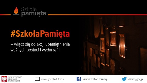 Są to wyłącznie propozycje działań w ramach akcji. Chętnie poznamy inicjatywy realizowane przez przedszkola, szkoły i placówki oświatowe z całego kraju. Zachęcamy do zamieszczania informacji o realizowanych działaniach na stronach internetowych oraz postów w mediach społecznościowych z oznaczeniem #SzkołaPamięta.